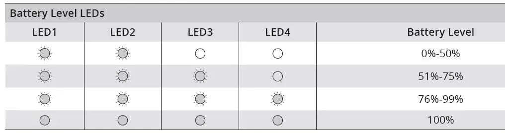 Світлодіоди показують рівень заряду батареї під час зарядки та роботи.